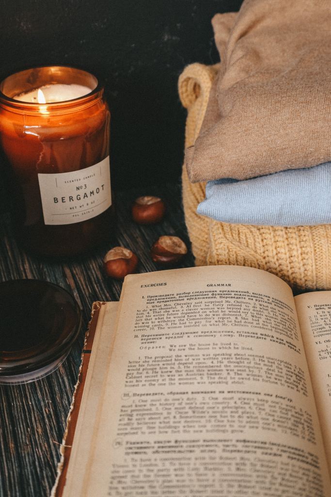 What could be cozier than cuddling up with a blanket, a cup of tea, a candle, and a good book?