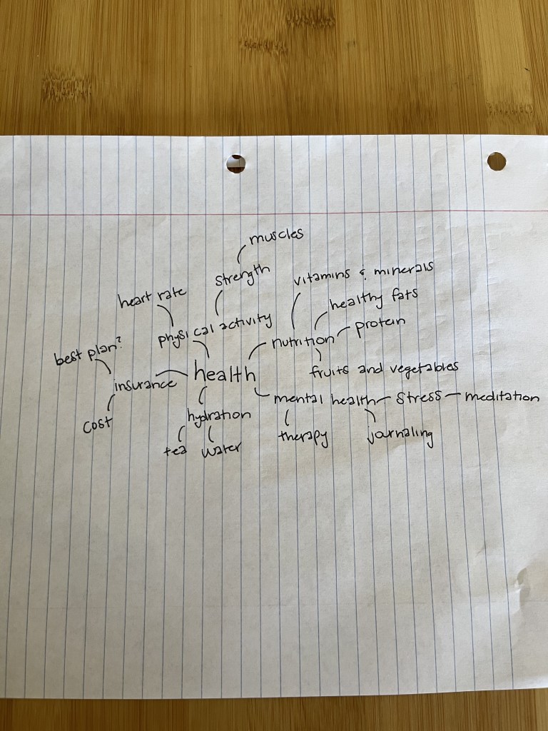 Once you select your topic, you will write all the thoughts you associate with that topic, using a line to connect each association to the original word.