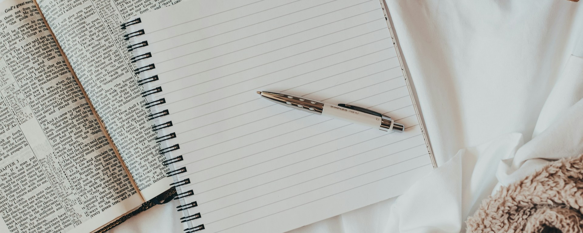 Photo by Ann poan: https://www.pexels.com/photo/opened-notebook-with-pen-on-white-desk-5797900/